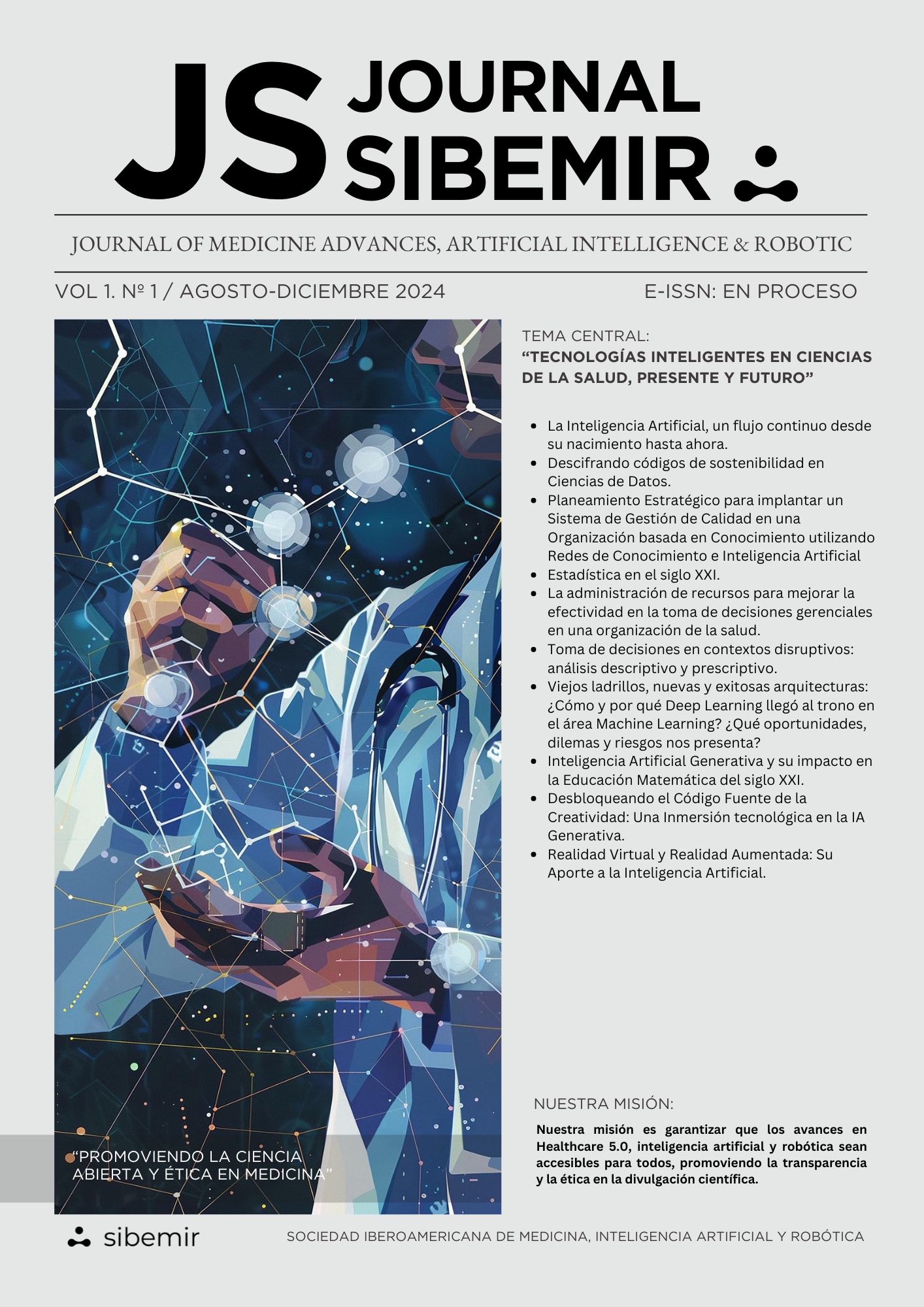El "Journal SIBEMIR” (Sociedad Iberoamericana de Medicina, Inteligencia Artificial y Robótica) es una revista científica revisada por pares y de acceso abierto, dedicada a la exploración y avance de la inteligencia artificial en el ámbito médico. Nuestro enfoque se centra en cómo la IA puede ser desarrollada y aplicada éticamente para mejorar los tratamientos y diagnósticos, respetando siempre la dignidad humana y los principios éticos fundamentales.